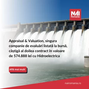 Appraisal & Valuation, singura companie de evaluări listată la bursă, câștigă al doilea contract în valoare de 574.888 lei cu Hidroelectrica